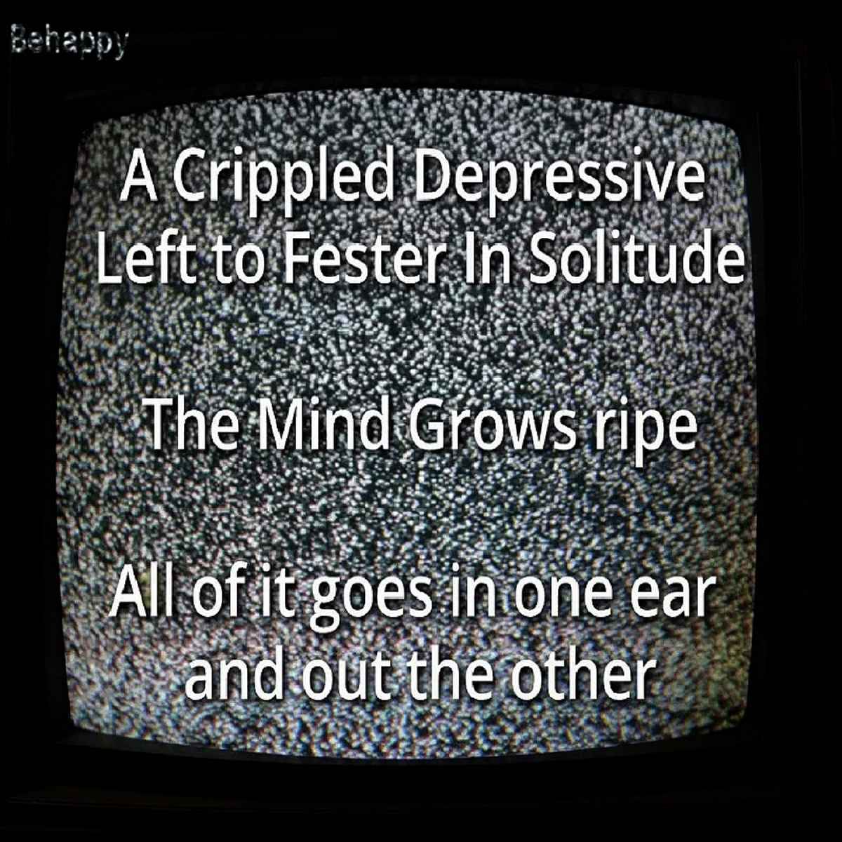 Artist - Behappy Album - N/A Track - A Crippled Depressive Left To Fester In Solitude Year - 2023 Genre - Experimental Black Metal/Noise Video Available here - youtu.be/3Z8TrzT2saM
